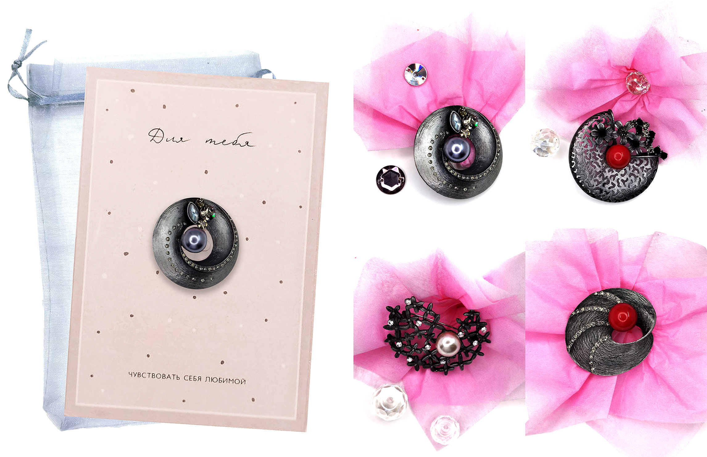 ОТКРЫТКА С БРОШЬЮ "ОВАЛ С ОДНИМ КАМНЕМ"